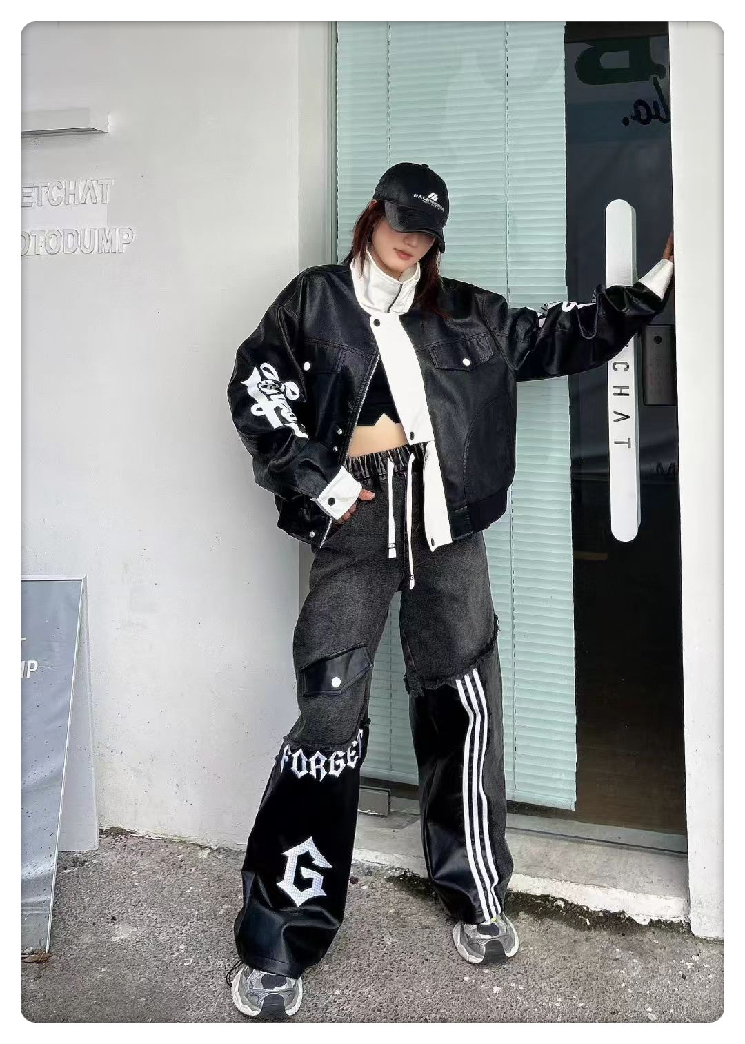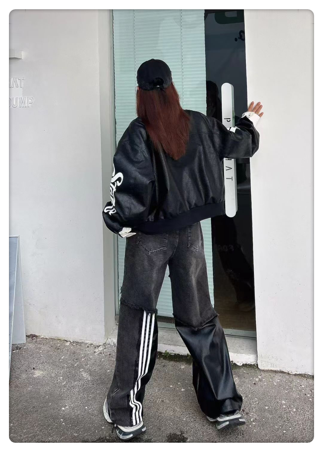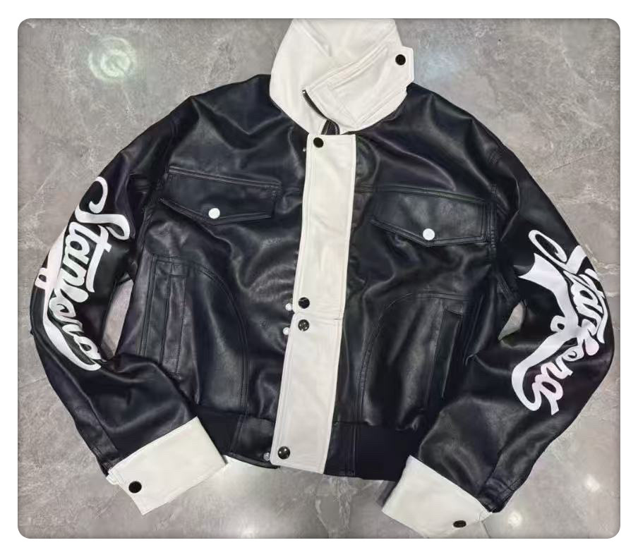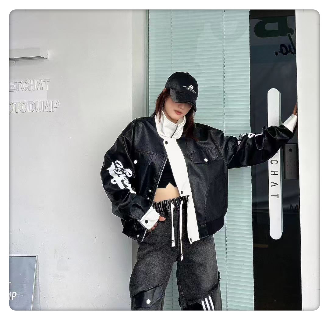 Personalized White Stand-collar Loose Short Jacket With Sleeve Lettering